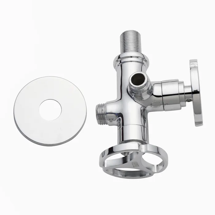 Introducing the 2-in-1 AngleValve from the Senorita Chrome Collection, designed to deliver both style and functionality. This sleek fixture, in a chrome finish, features two separate angle valves, each regulating water flow to different outlets. This versatile design allows you to manage water supply to jet sprays and flush valves from a single point, enhancing convenience. The accompanying flange ensures a secure, leak-proof installation for long-term, reliable performance.