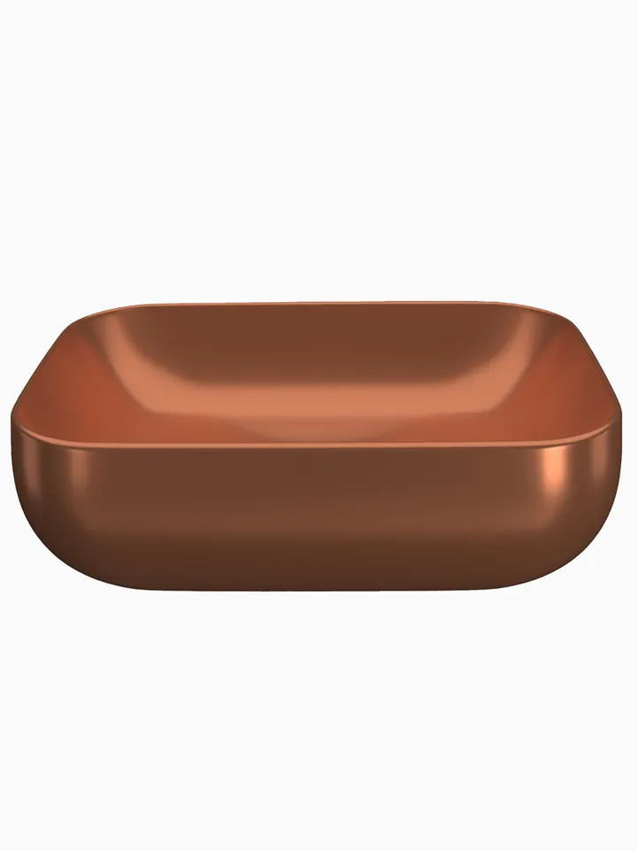 Elevate the sophistication and warmth of your bathroom with Gravity's Armani Table-Top Basin in Copper. This striking, warm metallic tone infuses your space with luxury and style, while the contemporary square design with gently rounded, curved edges blends modern elegance with a sense of comfort. Perfect for those looking to create a bold, refined atmosphere, this basin serves as a captivating focal point in any bathroom, enhancing the space with its vibrant yet serene appeal.